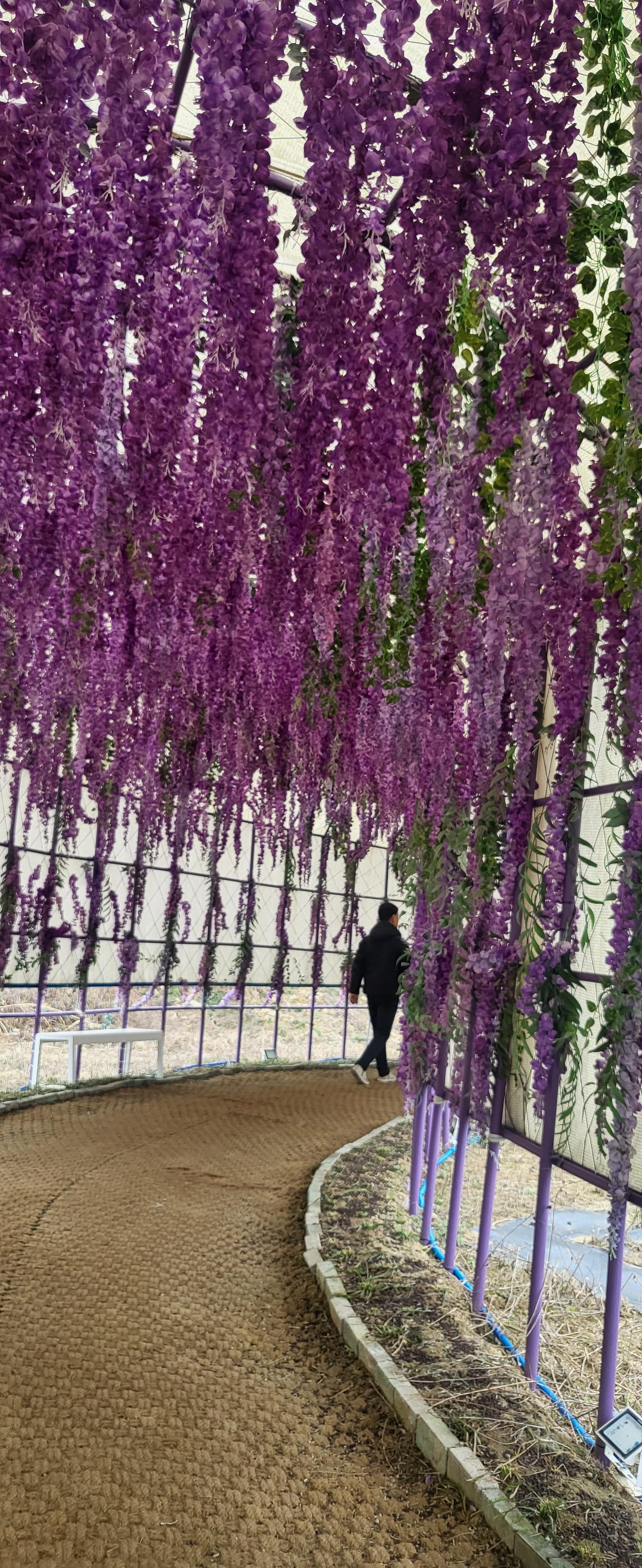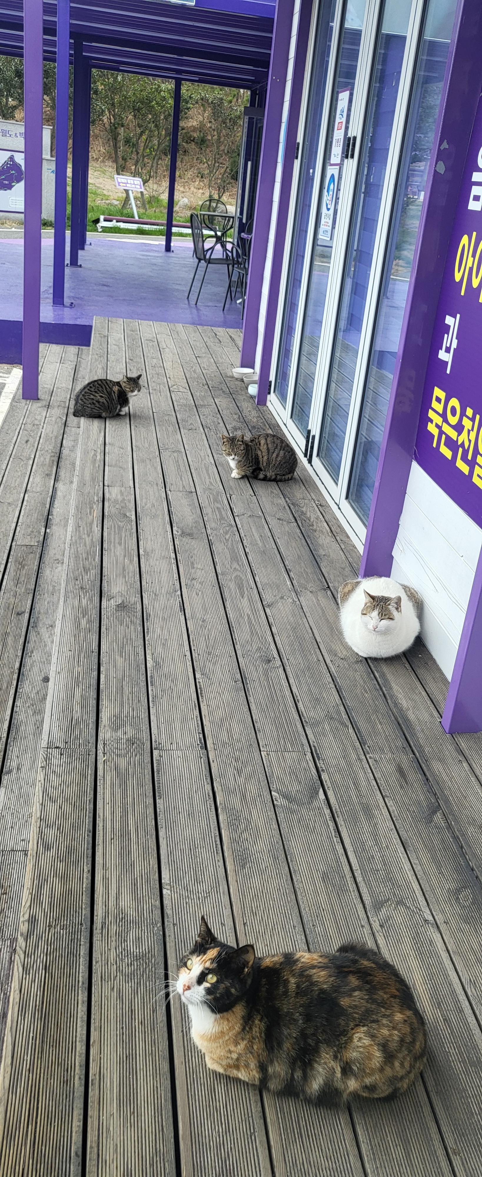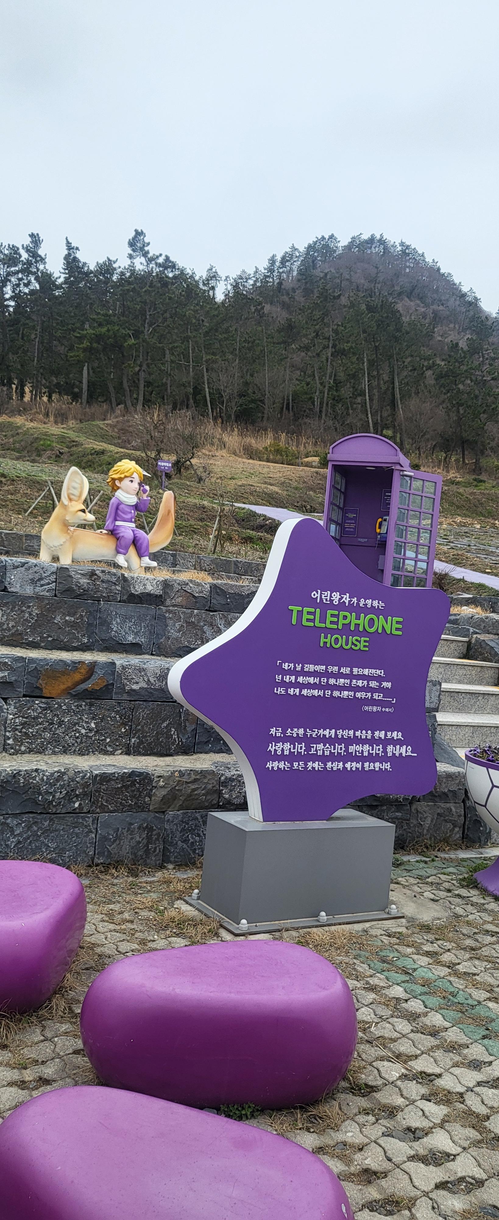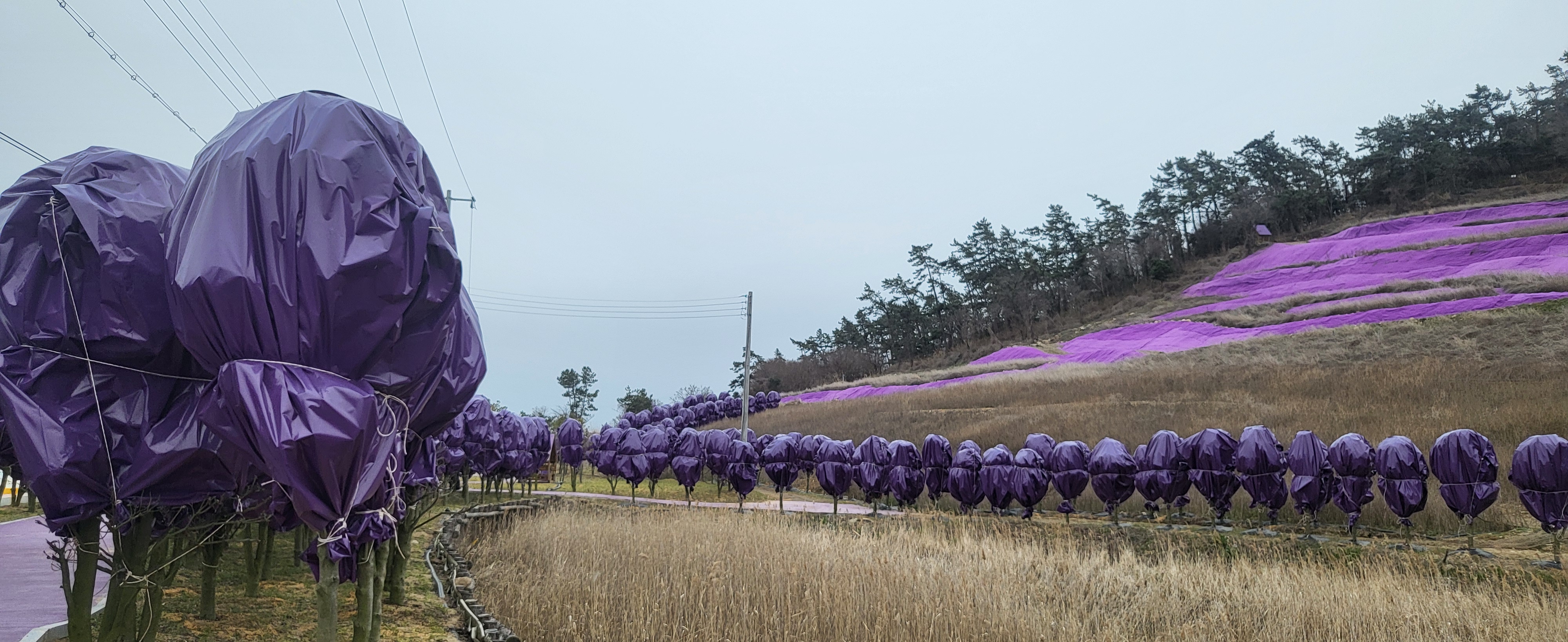 초입부터 보라빛으로 시작됩니다. 지역 기부자의 명단이 붙은 현수막이 보라색으로 여러번 붙어 있습니다. 좀 생소하지만 지역민들의 고마움에 표시라고 생각하고 지나칩니다. 비가 온다는 일기예보를 듣고 나왔기에 하늘은 회색빛이지만 섬둘레길를 걷기로 했습니다. 섬들을 이어주는 나무로 된 다리는 온통 보라빛입니다.